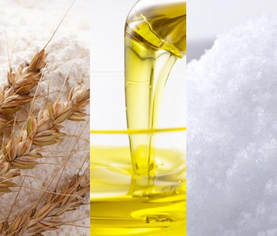 - そうめんの材料は「小麦粉」「塩」「油」と、とてもシンプルです。当社がこだわっている、原材料についてご紹介いたします。